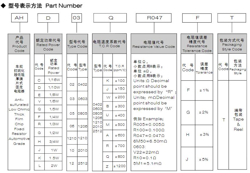 風華高科車規抗硫化超低阻厚膜片式固定電阻器型號命名規則: