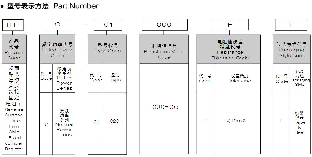風華高科反面貼裝厚膜片式跨接固定電阻器型號命名規(guī)則: