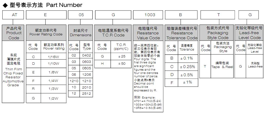 風華高科車規薄膜片式固定電阻器型號命名規則: