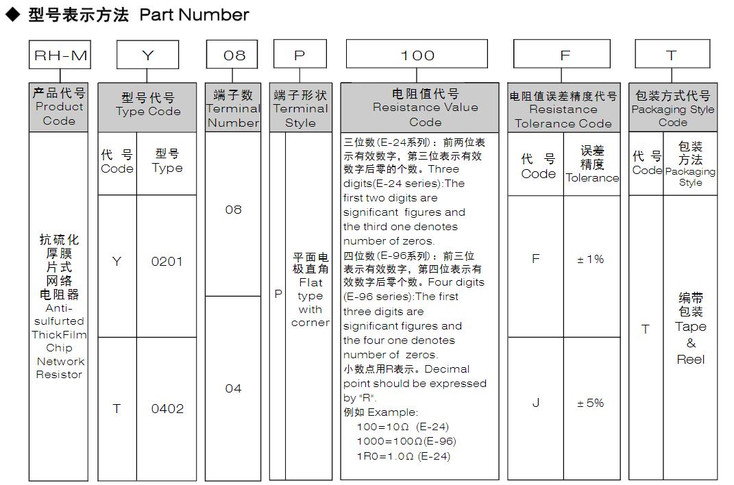 風(fēng)華高科抗硫化厚膜片式網(wǎng)絡(luò)電阻器-平面電極型號命名規(guī)則: