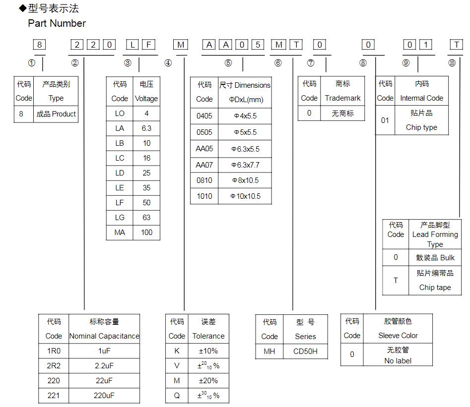 風華高科MH系列鋁電解電容器型號命名規(guī)則: