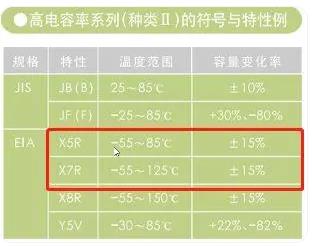 貼片電容X5R與X7R電容的對比: