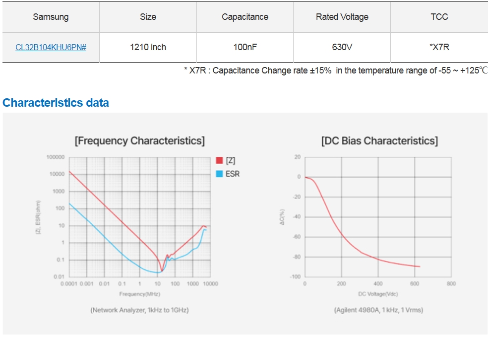 ? 三星電機正在不斷擴大小型,高壓,高容值MLCC的line-up。本產品在1210 inch、X7R、630V line-up中,將容值擴大到了100nF, 滿足 xEV (OBC、DC-DC Converter 等) 應用的小型化、高效率特性要求。