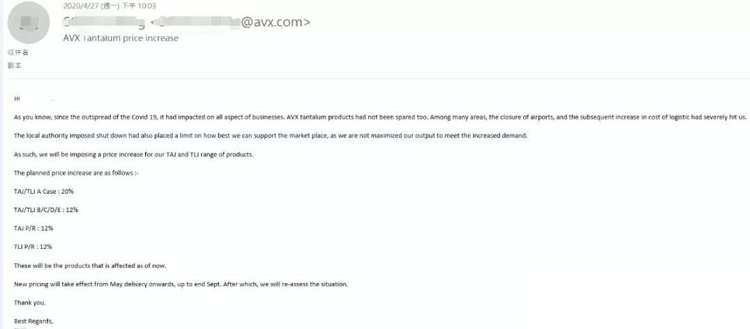 AVX鉭電容漲價