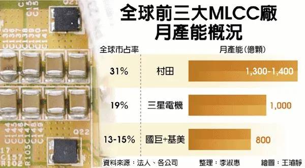 初估大發(fā)新廠滿載稼動(dòng)之下,兼并估計(jì)基美的MLCC產(chǎn)能,新國巨MLCC月產(chǎn)能可望站穩(wěn)1,000億顆,僅越日商村田(Murata)、韓商三星電機(jī)(SEMCO),穩(wěn)居寰球第三大廠。