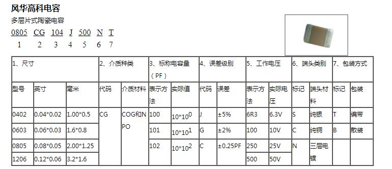 風(fēng)華貼片電容:0805 CG 101 J 500 N