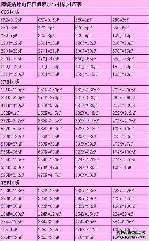 陶瓷貼片電容容值材質(zhì)對應(yīng)表:今天超翔電子分享下,不同材質(zhì)COG材質(zhì),X7R材質(zhì),Y5V材質(zhì).容值對應(yīng)表!希望對您有幫助,需要采購陶瓷貼片電容請聯(lián)系超翔業(yè)務(wù)員,我們會及時回復(fù),給您最優(yōu)惠的價格。更多知識,請關(guān)注超翔電子!