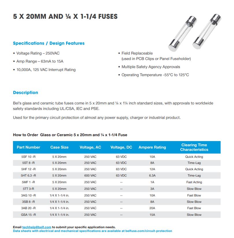 BEL的玻璃和陶瓷管保險(xiǎn)絲有5 x 20毫米,?x 1英寸標(biāo)準(zhǔn)尺寸,批準(zhǔn)在全球范圍內(nèi)
