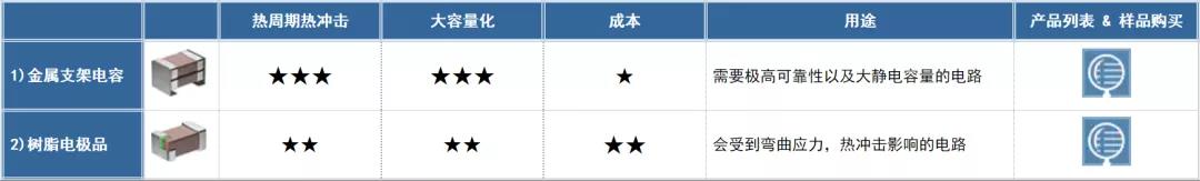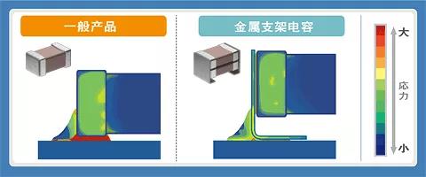 1. 由金屬端子"分散"熱沖擊的金屬支架電容