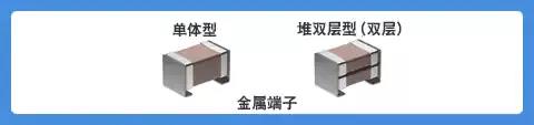 金屬支架電容是一款在端子電極上安裝金屬端子的MLCC,分為單體型(單層)與堆雙層型(雙層:雙重)2類。(圖4)。