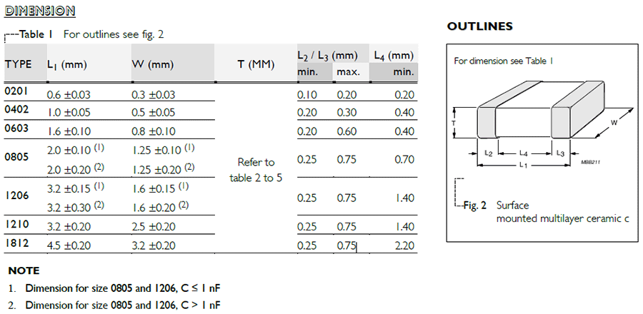 電容公差:B =± 0.1pF;C =± 0.25pF;D =±0.5pF; F =±1%;G =± 2%;J =±5%;K =±10%
