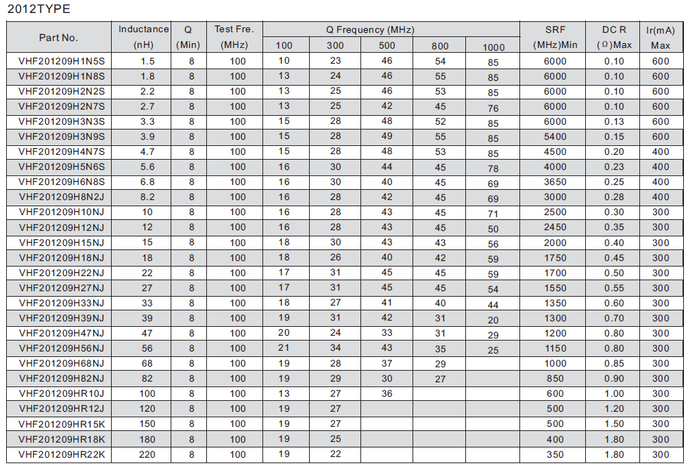 電感范圍:1nH~220nH