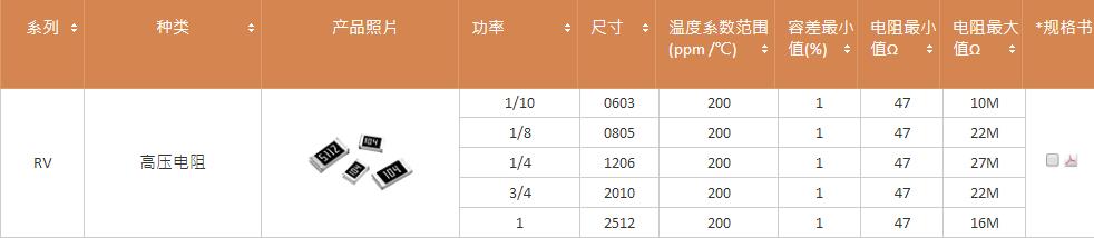 產品系列:國巨RV高壓電阻系列