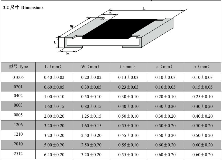 風(fēng)華高科貼片電阻封裝尺寸對(duì)照表